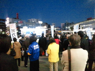 駅前は候補者の遊説が行われてます。
