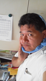 顔にタオル巻いて、ほほを冷やす姿を見て